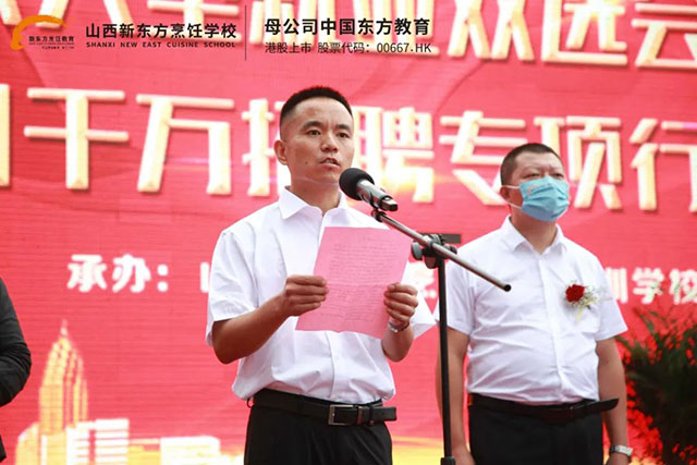 儀式現(xiàn)場,山西新東方烹飪學校于曉曦校長首先為本次活動致辭。他表示,2022年我國就業(yè)形勢依然比較復雜,面臨諸多挑戰(zhàn),學校根據(jù)集團要求,聯(lián)合合作的企業(yè)單位采取了“穩(wěn)崗位、擴渠道、提技能、促匹配”等系列強化就業(yè)政策,確保了企業(yè)有人才可選,學員有崗位可從。