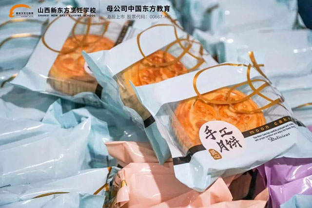 以溫情做皮,幸福為餡,每一塊都是我校西點(diǎn)老師純手工自制,小餅如嚼月,中有酥與飴,是心意,更是情意,這些心意滿滿的新東方月餅,延續(xù)著傳統(tǒng)的風(fēng)華。由西點(diǎn)老師親手制作的月餅,為校園平添了一抹節(jié)日的喜慶,更為大家心里增添了一份溫暖和感動(dòng),教學(xué)樓內(nèi)彌漫著喜慶和甜蜜的氣息。