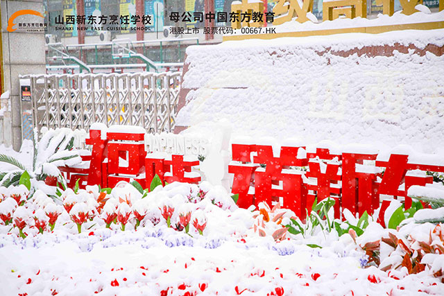 踩在雪地里的腳印發(fā)出“咯吱咯吱”聲,隨手的涂鴉伴隨著嬉笑聲,是這春日里獨(dú)家的記憶,是2023級新生在太原的第一場雪,他們帶著對烹飪大學(xué)的美好向往,和山西新東方來了一次浪漫的邂逅。