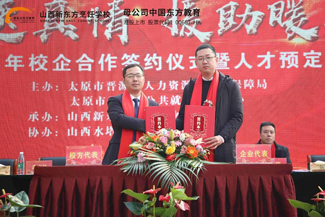 在為行業(yè)源源不斷提供高技能烹飪?nèi)瞬诺耐瑫r(shí),山西新東方主動(dòng)對(duì)接區(qū)域企業(yè),不斷提升學(xué)校與區(qū)域經(jīng)濟(jì)的融合度,努力形成職業(yè)教育與區(qū)域產(chǎn)業(yè)相融共生、同頻共振的生動(dòng)局面,使職業(yè)教育“大有可為”的美好愿景轉(zhuǎn)為“大有作為”的實(shí)踐經(jīng)驗(yàn)。在今天的校企合作簽約儀式&人才預(yù)定會(huì)上,新東方烹飪教育和水塔醋業(yè)的品牌戰(zhàn)略合作也正式啟動(dòng)。