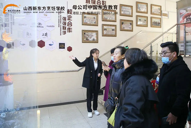 隨后,各中學(xué)老師一行又走進(jìn)學(xué)校全新升級的教學(xué)樓,不論是學(xué)生積極向上的精神狀態(tài),還是各個(gè)班級“新鮮出爐”的實(shí)訓(xùn)成果展示,都讓各區(qū)域中學(xué)老師印象深刻。在詳細(xì)了解了山西新東方教學(xué)課程設(shè)置、教學(xué)培訓(xùn)流程、生源及就業(yè)方面的情況,并對我校促進(jìn)烹飪行業(yè)發(fā)展所做出的貢獻(xiàn)給予充分肯定,紛紛為我校高質(zhì)量辦學(xué)點(diǎn)贊。