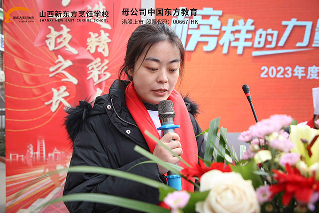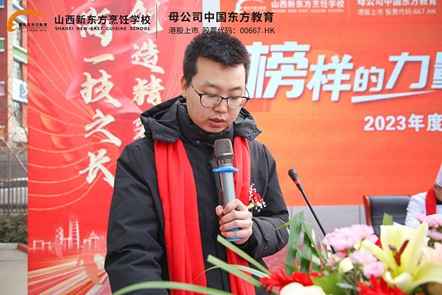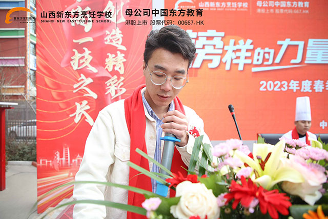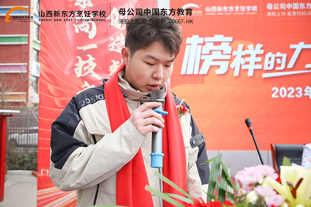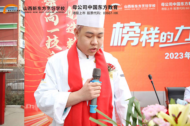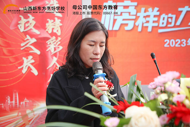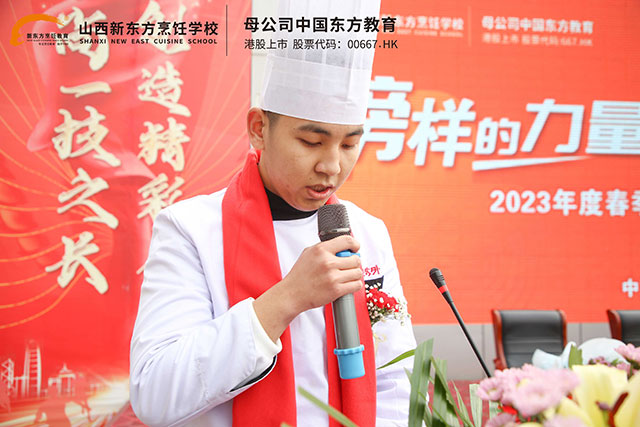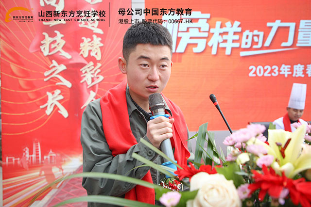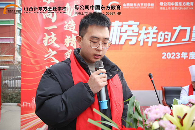 最后,山西新東方烹飪學(xué)校校區(qū)負(fù)責(zé)人為本次成功學(xué)子報(bào)告會(huì)致辭,廖主任對(duì)這次培訓(xùn)的成功舉辦和所取得的成績(jī)給予高度評(píng)價(jià),并寄語全校師生,希望在新的起點(diǎn)上揚(yáng)帆起航,將報(bào)告會(huì)上傳授的知識(shí)內(nèi)化于心、外化于行,向優(yōu)秀看齊、向榜樣學(xué)習(xí),行而不輟、未來可期。