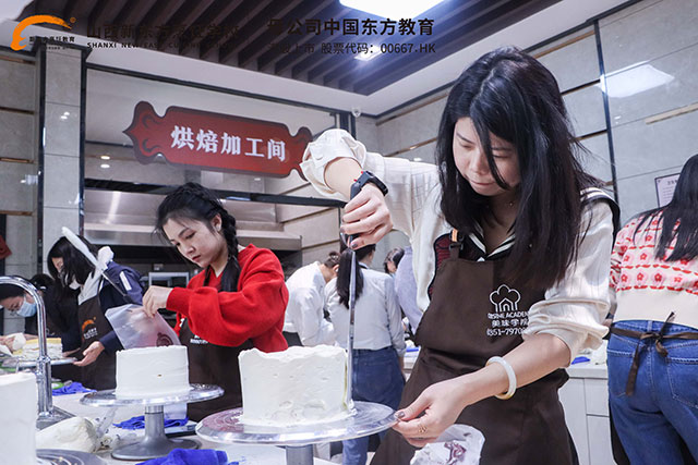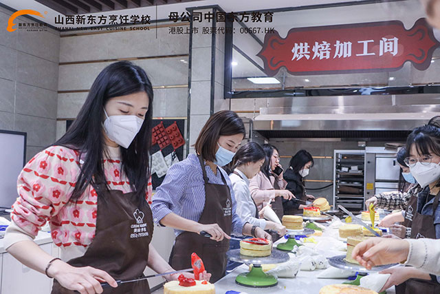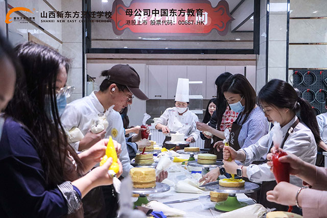 在山西新東方的西點烘焙理論實踐相融合的課程中,不僅生動有趣,而且獲得感滿滿。一番忙碌后,在大家的巧手裝扮下,精美而又富有創(chuàng)意的蛋糕紛紛新鮮亮相;顒蝇F(xiàn)場香氣四溢,彌漫著快樂和幸福的味道。