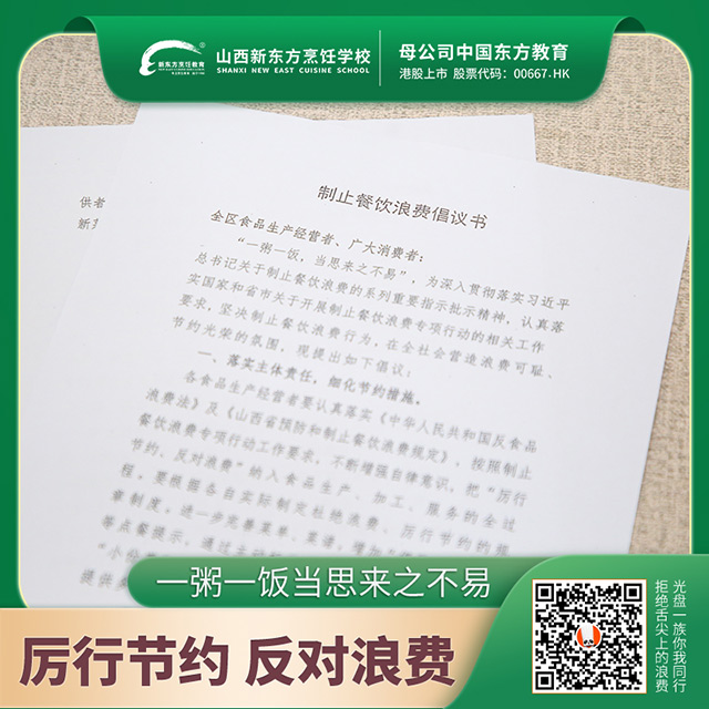 民以食為天,食以儉為德。為深入貫徹落實《中華人民共和國反食品浪費法》,在全校營造“制止餐飲浪費”的濃厚氛圍,山西新東方特向廣大教師、學生發(fā)布“制止餐飲浪費從我做起”倡議書。