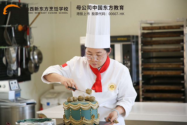 從奶油打發(fā)、蛋糕抹胚到創(chuàng)意裱花,再到最后的整體組裝,看著老師們嫻熟的制作手法,點滴細節(jié)之中展現(xiàn)出我校西點教學的專業(yè)品質(zhì),折射出新時代技能人才對工匠精神的傳承與弘揚。
