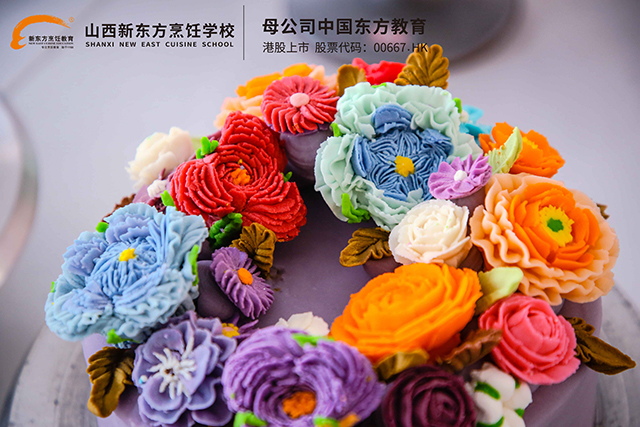 學(xué)員們手法熟練,手指在奶油間靈活穿梭。伴隨著“嘶嘶”的聲響,五彩斑斕的糖霜在空氣中舞動,宛如一場無聲的視覺盛宴。他們的巧手仿佛有了生命,奶油在指尖跳躍、旋轉(zhuǎn)、綻放,最終化為一件件令人嘆為觀止的藝術(shù)品。