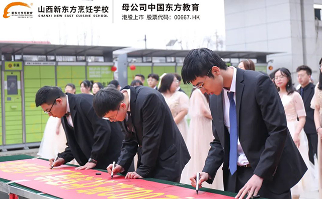 凡是落幕,皆為序章。典禮最后,畢業(yè)學(xué)子與老師,紛紛在簽字板上簽字,烙下屬于自己的獨(dú)特印記。就此,他們?cè)谏轿餍聳|方的學(xué)習(xí)和生活畫上圓滿的句號(hào)。在學(xué)校創(chuàng)就業(yè)指導(dǎo)中心的安排下,他們即將奔赴工作崗位,將踏上新的征程,從學(xué)生到烹飪大廚,迎接他們的是一段全新的人生旅程。